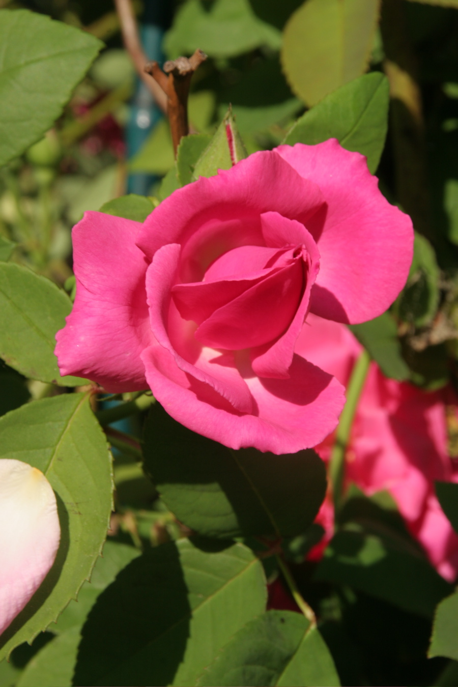 One of my fondest dreams is to be a real rose gardener someday. That will require a major overhaul in my character, because roses need consistent, careful, measured, routine, precise and steady attention. These are not words I or anyone else would use to describe me. So, in the meantime, I have an interim rose garden with hardy, strong varieties that give me immense enjoyment in spite of my antithetical rose personality. Here is a tour of my sweet-smelling friends, along with a peek at perhaps the ultimate rose companion.