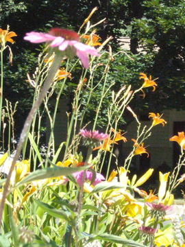 The lilies are at their apex, with some of the more hybrid varieties just coming on. The common tiger lilies are just about done, but there are lemon yellow ones and golden, double-flowered ones, plus the liatris, dianthus and purple coneflowers are going to be beautiful in the coming weeks. I have lots of catch-up weeding to do, but I am inspired by my current reading to get back out into the garden.