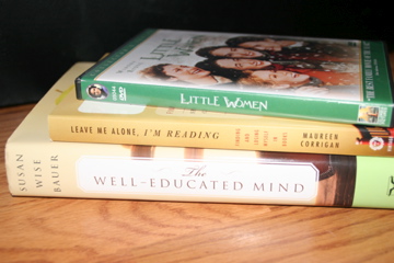 But wait! There’s more! Since I had a coupon, I got 25% off of that and was able to also get a fun little book about reading called “Leave Me Alone, I’m Reading” by Maureen Corrigan, the woman who does book reviews for Fresh Air on NPR. With some other birthday money, I got Little Woman on DVD and a book by an author who I greatly respect: Susan Wise Bauer. It is called “The Well-Educated Mind: A Guide to the Classical Education You Never Had” and is a review of classic literature, philosophy and knowledge. Her book “The Well-Trained Mind” was my bible when I was homeschooling Johnathan. I highly reccommend it to all parents interested in classical thought and education, even if you are not homeschooling.