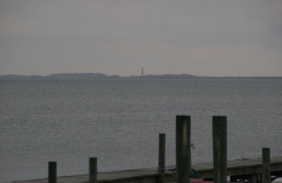 Here is the blinking lighthouse at Cape Lookout. I wish you could feel the cold, stinging rain in this photo. We chose the only 6 hours of the weekend with less than perfect weather to get in a boat and leave the safety of the shore, but it would have been so boring if it had been calm and sunny. :o) No, really and truly, it was fun to rough it. Everyone was such a good sport.