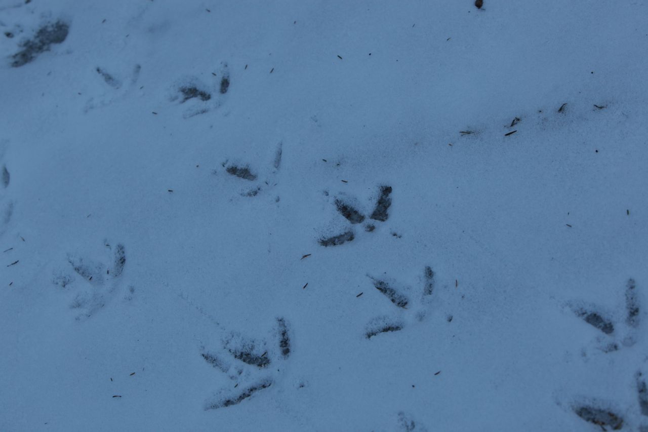 Turkey Tracks in the Snow. We’ve seen flocks of turkeys making their way through the woods some years, but not this year.