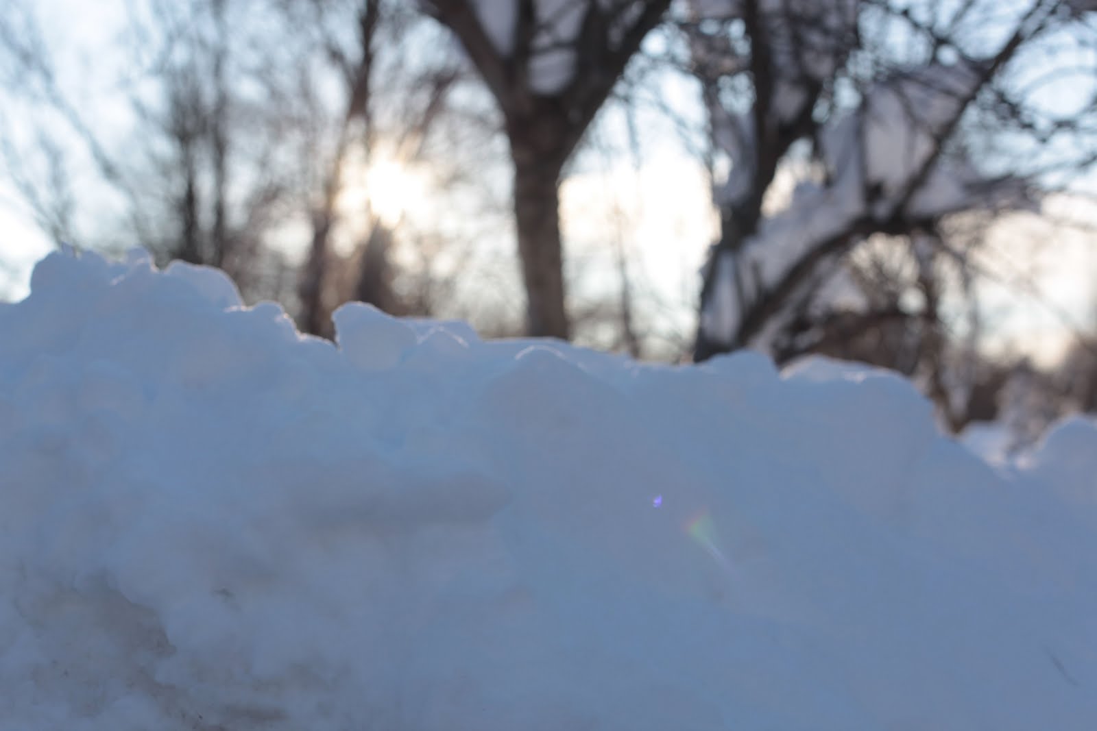 This is at eye level, looking upwards at the pile of snow made from shoveling our driveway and cars.  It’s about 6 feet tall.