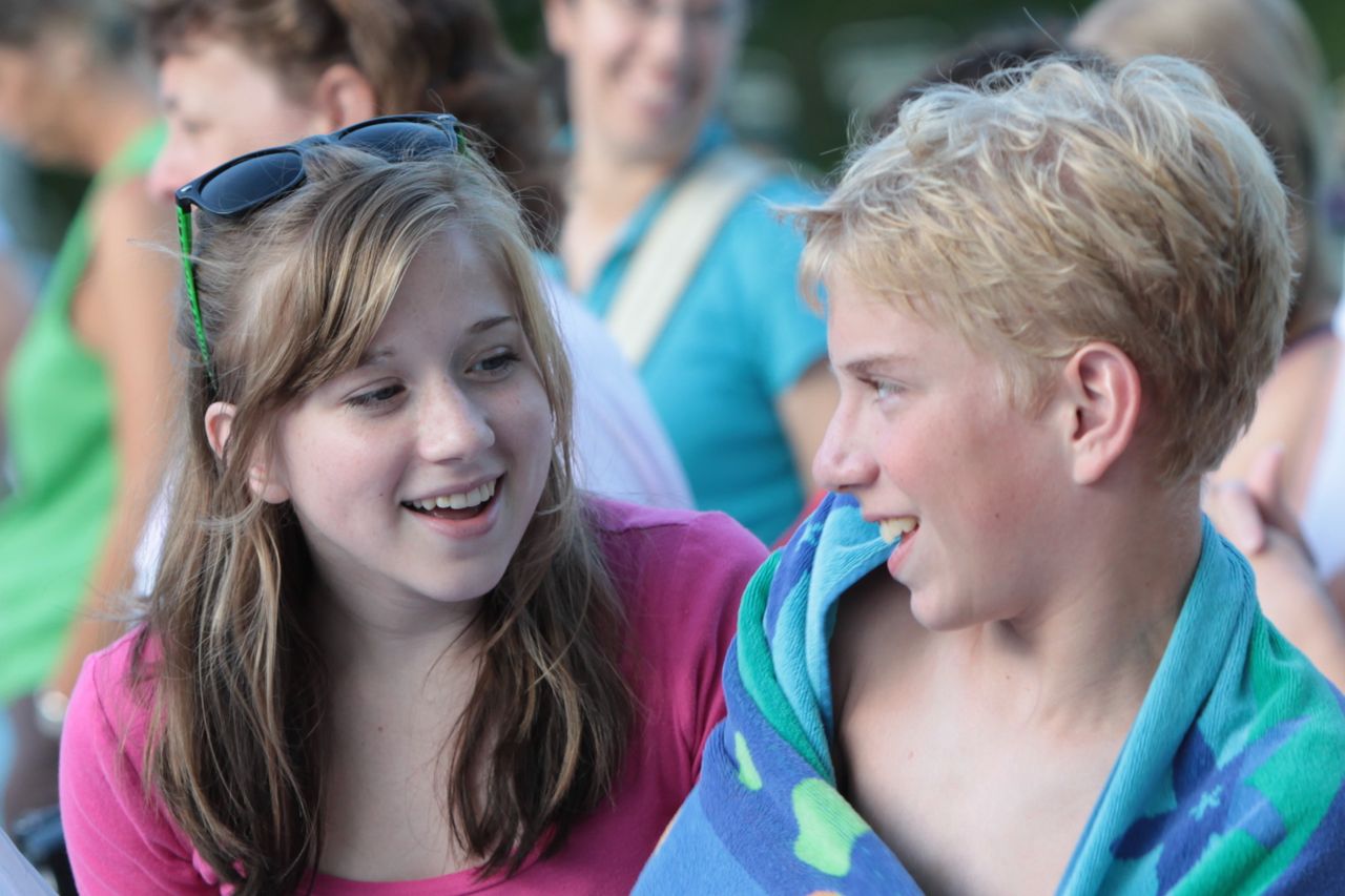I need to reach for happiness. I’ll write more about it later, but a friend passed away on Saturday, and I’m having normal feelings of tenderness and mourning, but I just can’t get bogged down in them. Last night I was feeling really heavy while at the swim team picnic. I was numb and weepy, but then I saw this through the lens of my camera and felt so much better. I just love watching my silly, funny kids interact.