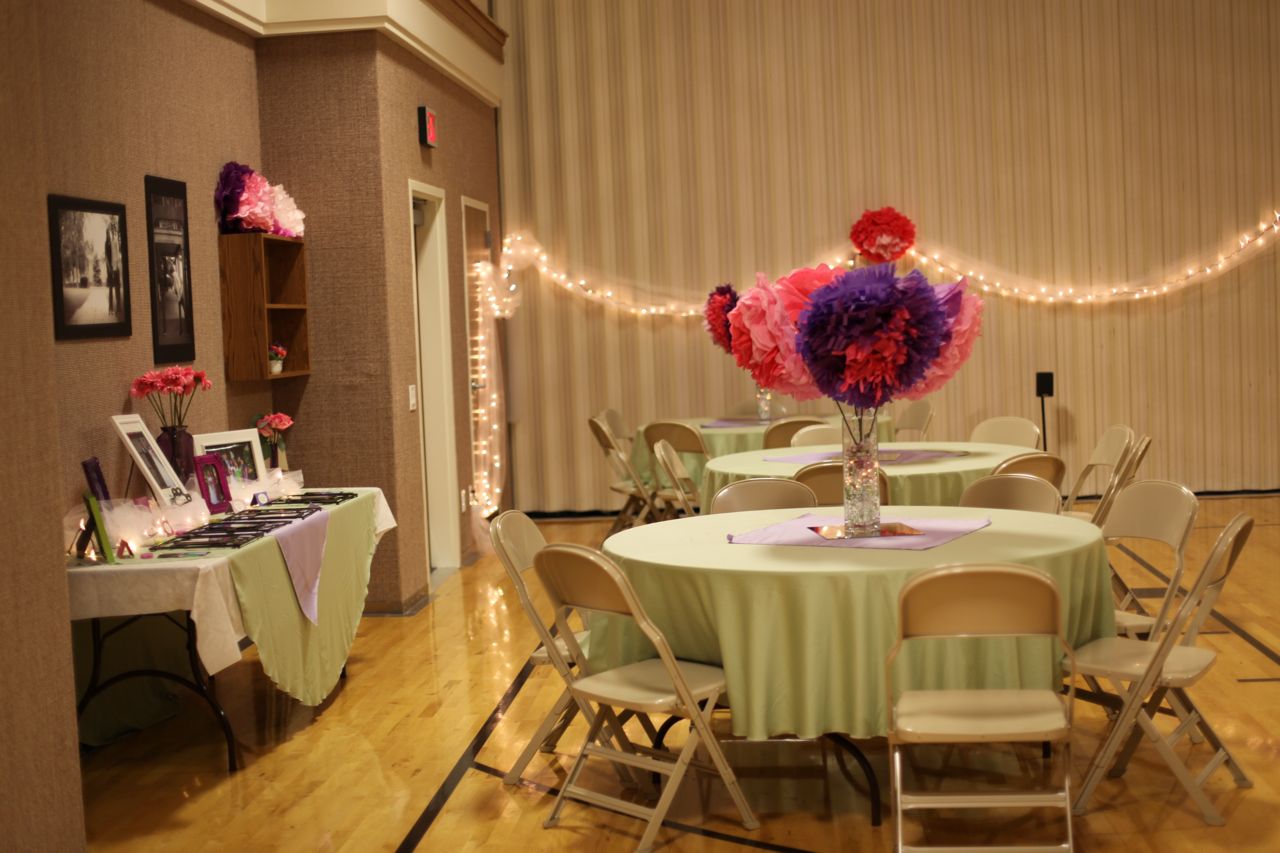 • The decorations turned out to be as colorful as I’d hoped. There was no disguising that we were in a gym, but that gym was full of dear, special friends, so really, even without a single pink tissue paper flower, it would have been the loveliest place on earth for our family. My only real disappointment was that the lights in our new church building can’t be turned down to a subdued glow, so we partied under the full glare of fabulous florescents. In spite of that, the colors were pretty and in general, my original ideas actually came to fruition, I have to say.