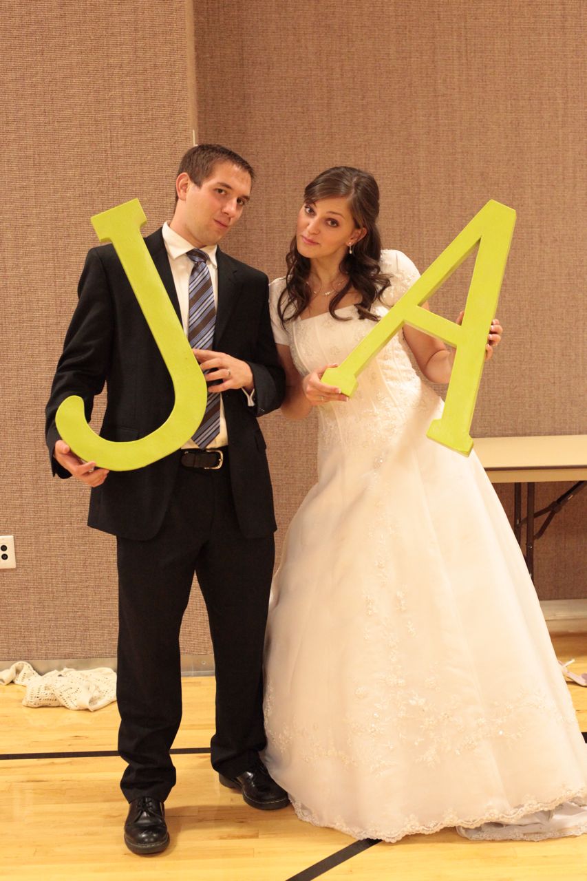It was a lovely party, and the decorations were beautiful! It was great to see you and everyone, and hey! JA are my initials too!!For the record, I'm not tired of reading about the wedding. It was great to see the happy couple in church on Sunday too. They're so cute!