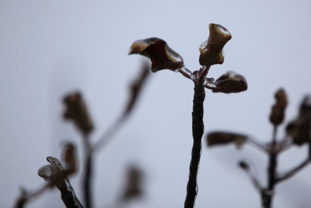 Today we have a snow day, or more correctly, an ice day. A light snow was followed by a few hours of freezing rain for just a slight glazing. It is already starting to soften and melt, and the roads are largely cleared, so we get the benefit of a morning fairy-land of icy trees and plants and another day for kids to study for midterms without too much of the fuss and bother of a really big storm. Win-win in my opinion.