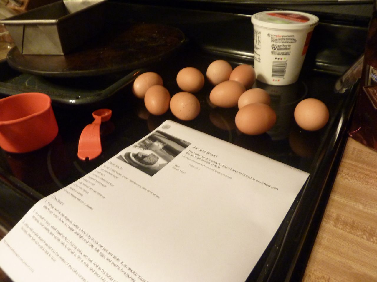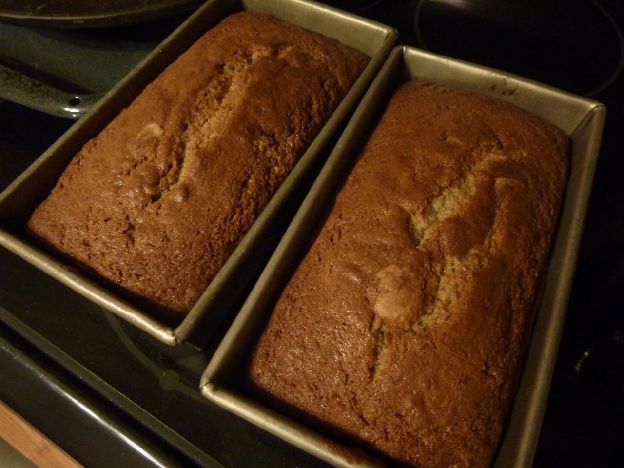 In the afternoon, Evan made banana bread pretty much on his own with just a few consultations from me. He is quite a baker and likes to make crumb cake and a few other favorites as well. We had so many bananas that we got 4 loaves, half plain and half with chocolate chips. That was pretty much all we ate for the rest of the day. I think I could actually live on banana bread. I like Martha Stewart’s recipe with sour cream in the batter. I haven’t been able to mess it up, so it gets the vote as the official family version.