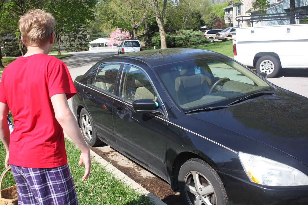 | There is an egg perched between the side mirror and the the car window. Evan can’t see it. Everyone else can but it is one of his so they can’t claim it. |