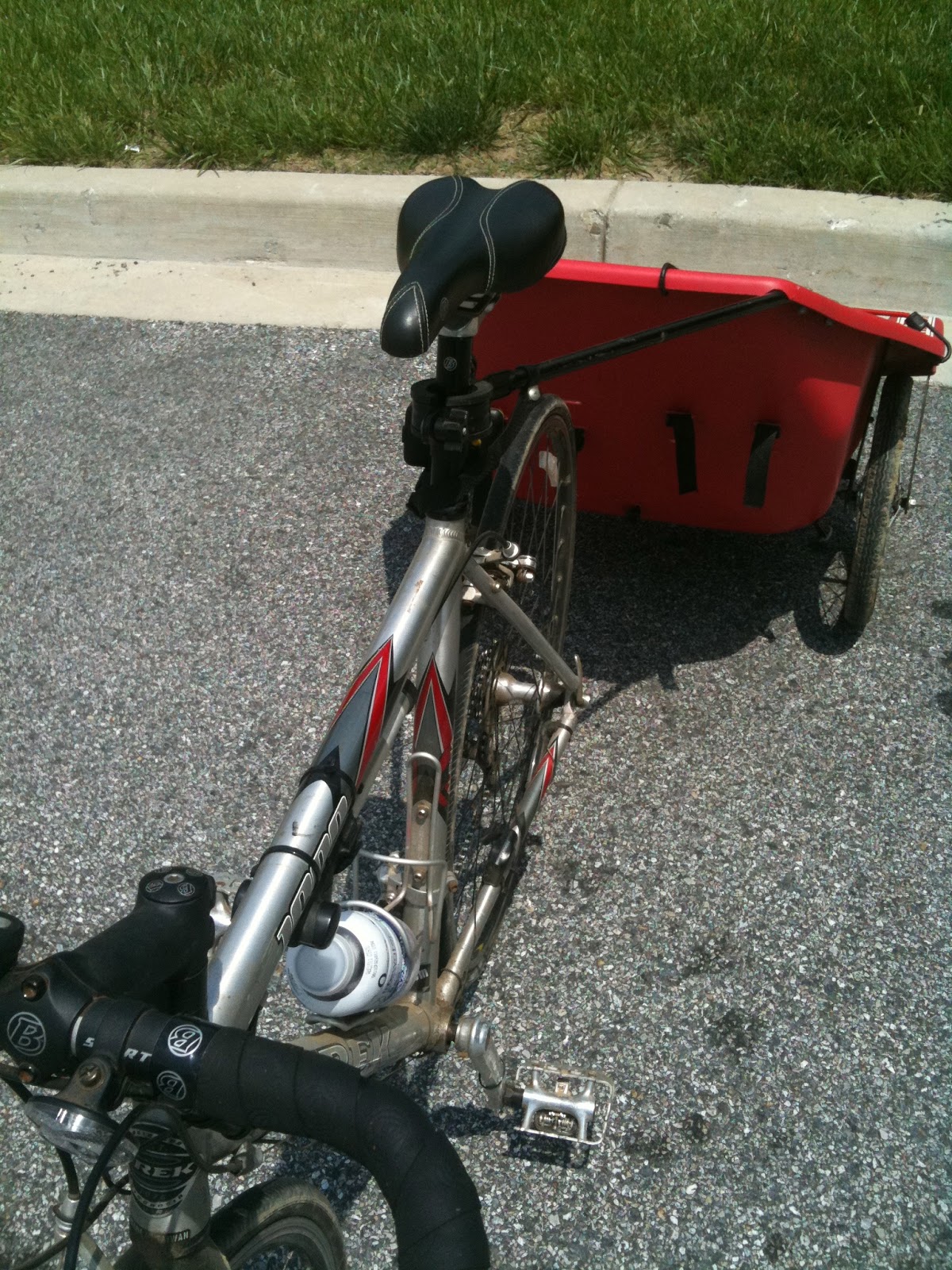 I made my first bike trip to the grocery store on Wednesday and it went pretty well. I used our old Kiddie Kart trailer and it worked like a charm. This trailer is very easy to haul-I hardly felt it behind me, even with 20 or so pounds of produce on the way home. I feel like I could haul a lot more if I needed. I always really liked it for the kids, so I’m glad we kept it. Next week I want to try riding to one of the farmer’s markets, even though I’ll have to take a longer way to avoid roads. PS, I will be SO glad when this project is finished. I found myself right in the middle of the construction and it was highly annoying. Fortunately there is another path to the store that was untouched, but I can’t really ride to the lake, which is one of my favorite routes.