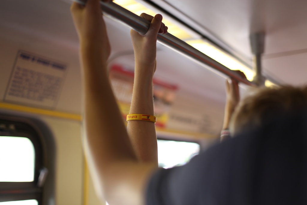 | The train on the way home was crowded-we had to stand for the first 20 minutes. |