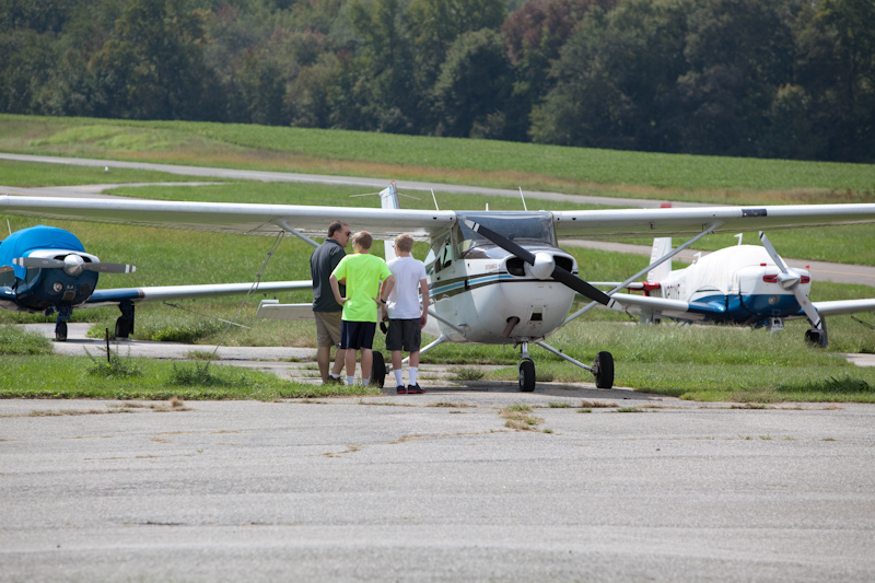 Last Christmas, my pal suggested buying our two boys Groupons for a flying lesson. They could use it as a Merit Badge for Scouts and have a fun day together in the bargain. It finally worked out to do it last week on a day off school. It was just great. We had a beautiful day, they were game for the adventure, and they had a great instructor. He took a half-hour or so to show them the fundamental parts and procedures of the aircraft itself, they they took off. J flew over the bay to Cambridge and Evan flew back over to Bowie. They were gone almost 2 hours. The smiles on their faces upon exiting the plane were absolutely priceless. It was clear that they had a great time. Thanks to M for putting it together and making it happen!