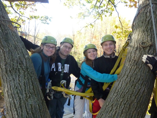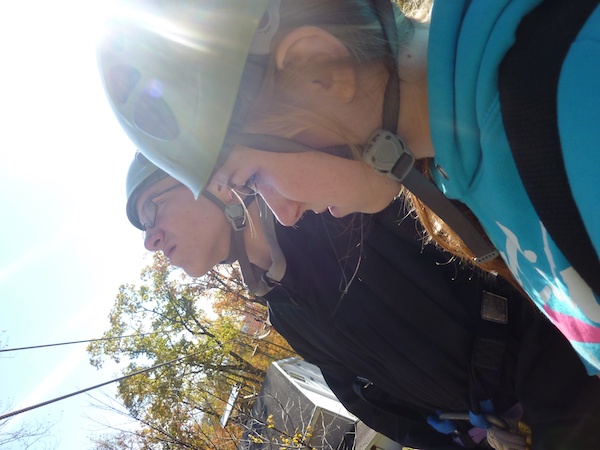 Thanks to Eversave and a day off of school, yesterday we found ourselves in rural Lancaster County, PA, all rigged up and flying through foliage so beautiful it didn’t seem real. Eric took the day off, the weather was amazing, our guides were perfect and all this combined to make a seriously fun memory. Standing 50 or 60 feet above the ground in the midst of this great Eastern forest that I love so much, with the leaves at their absolute most colorful, was an amazing experience. I’m so pleased it all worked out and that we could carve out this time together. I can enthusiastically recommend the Refreshing Mountain Camp as a great place to have a day out with your family.