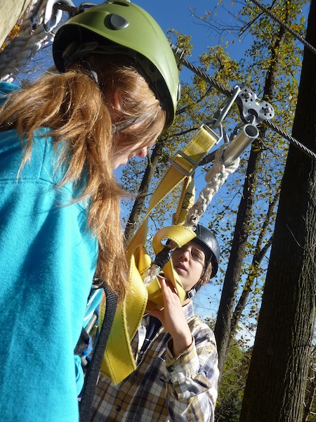 Thanks to Eversave and a day off of school, yesterday we found ourselves in rural Lancaster County, PA, all rigged up and flying through foliage so beautiful it didn’t seem real. Eric took the day off, the weather was amazing, our guides were perfect and all this combined to make a seriously fun memory. Standing 50 or 60 feet above the ground in the midst of this great Eastern forest that I love so much, with the leaves at their absolute most colorful, was an amazing experience. I’m so pleased it all worked out and that we could carve out this time together. I can enthusiastically recommend the Refreshing Mountain Camp as a great place to have a day out with your family.