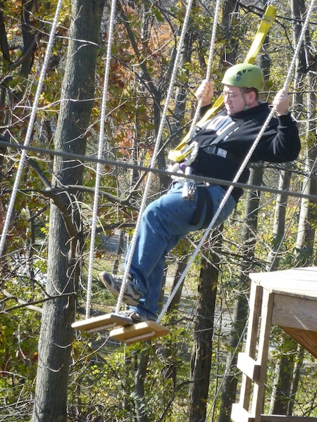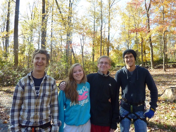 Thanks to Eversave and a day off of school, yesterday we found ourselves in rural Lancaster County, PA, all rigged up and flying through foliage so beautiful it didn’t seem real. Eric took the day off, the weather was amazing, our guides were perfect and all this combined to make a seriously fun memory. Standing 50 or 60 feet above the ground in the midst of this great Eastern forest that I love so much, with the leaves at their absolute most colorful, was an amazing experience. I’m so pleased it all worked out and that we could carve out this time together. I can enthusiastically recommend the Refreshing Mountain Camp as a great place to have a day out with your family.