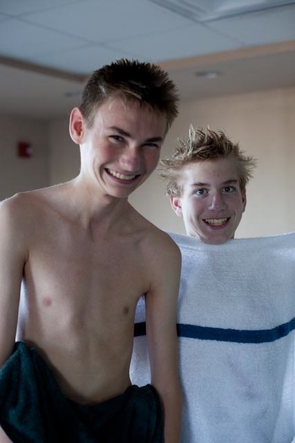 | Hot tub + teen boys + free time = crazy hair, fun times and a wet lens. It was worth it. |