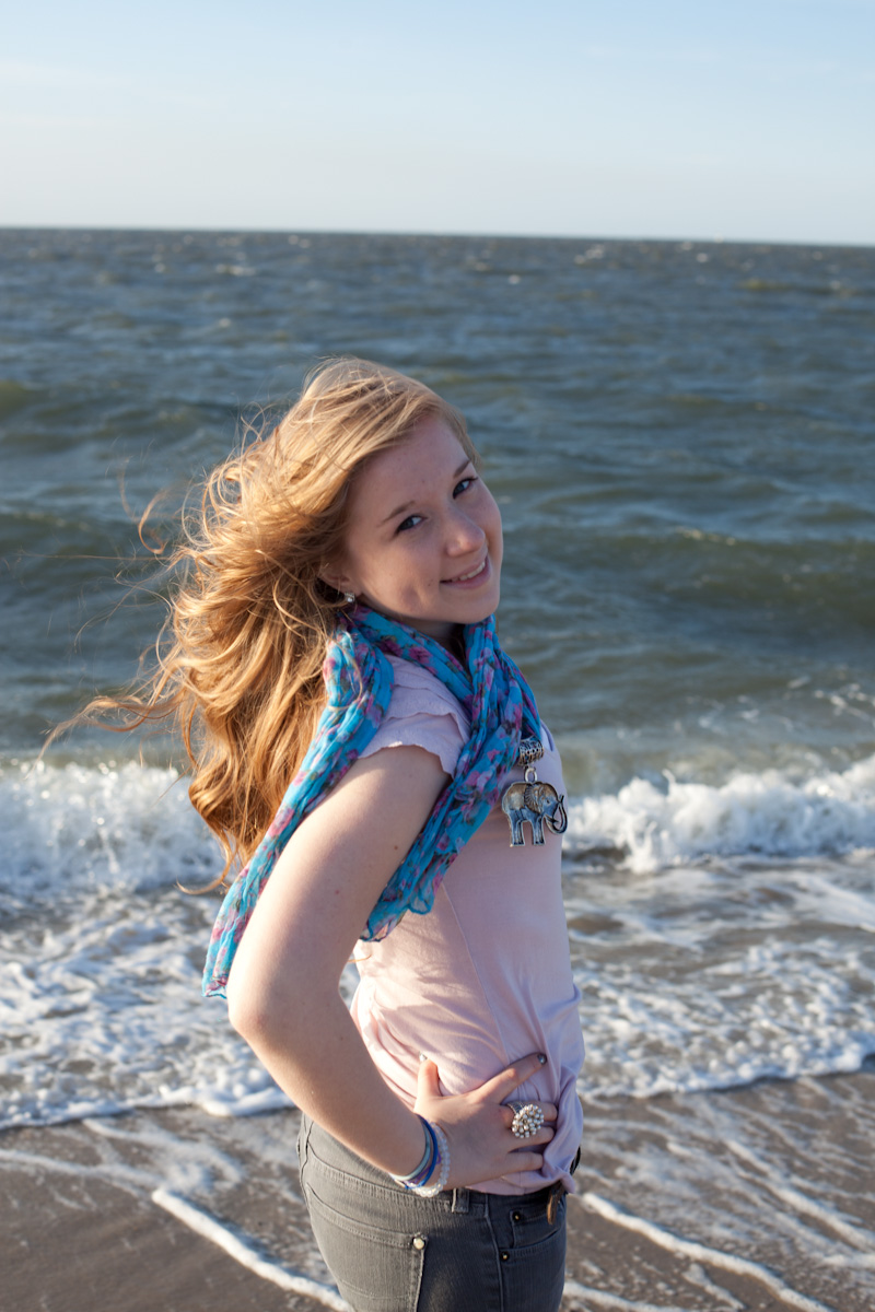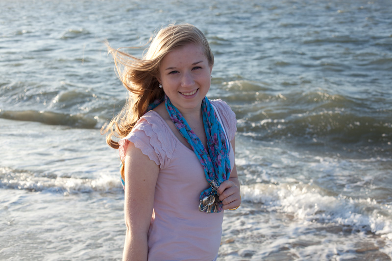 So, last Friday, because there was nothing else going on (just kidding-that was the day EVERYTHING was going on) Sara and I decided to run away to the coast of Delaware to take said senior photos. It was an original location, she loves the beach as much as I do, and it just felt like a good idea. The drive was an easy and fun 2 hours and we ended up in Lewes, DE in hopes that we would be able to get some west-ish facing coastline on that beautiful peninsula surrounded by both ocean and bay and thereby catch the sunset behind us. We were rewarded on that score. We were also rewarded with a fantastically perfect sky and the sight of kite-boarders all along the little cove where we ended up (that should have been a clue). We got there around 5pm, just as anyone who was enjoying a day at the beach was leaving, so we had the place mostly to ourselves.