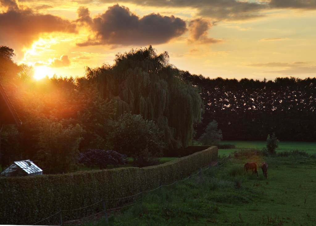 That evening, when we got back home, this was the view we enjoyed across the street from my brother’s house. Ahh. Evan commented that he may like small-town Europe better than big-city Europe, and I may agree with him.