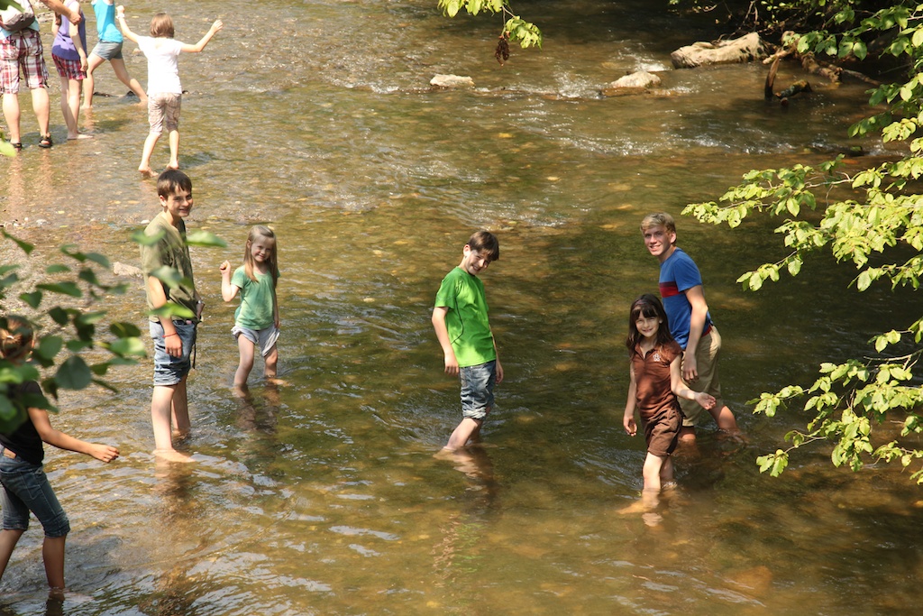 I know! I was actually here! It’s grand and has a bridge to cross over to get to it, with places where guards would have stood watch. It has a courtyard, its own chapel, staircases, cool stone dungeons, and all the places where you can see that it was built and carved right out of the existing rock, as so many castles were. It was astonishing in scale and beauty. I loved the setting most of all, and again, found my mind understanding better how so many of the great tales of literature and fantasy came about. This does put one in mind of adventures and what must have gone on all those centuries to keep it running and protected and preserved. A river runs through the valley, so we followed stone steps down to the shade and cool water. The kids skipped stones and enjoyed a break from the heat while Amy went back to wait for the car people to come. We lost our phone service, so after a while we went back up to see what was up with the car and savored our last views of this amazing place.