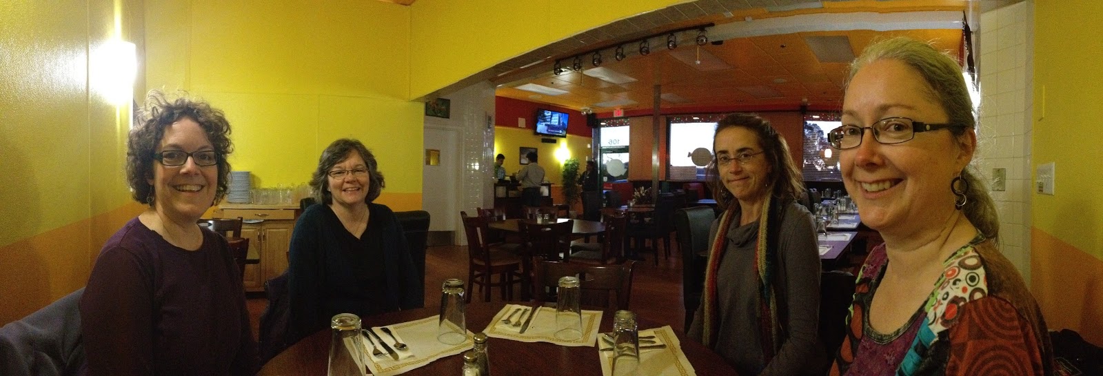 | Trying out my panorama feature while out for delish Indian food. This is Edie, Cindy, Beth and Sarah. Love them! |