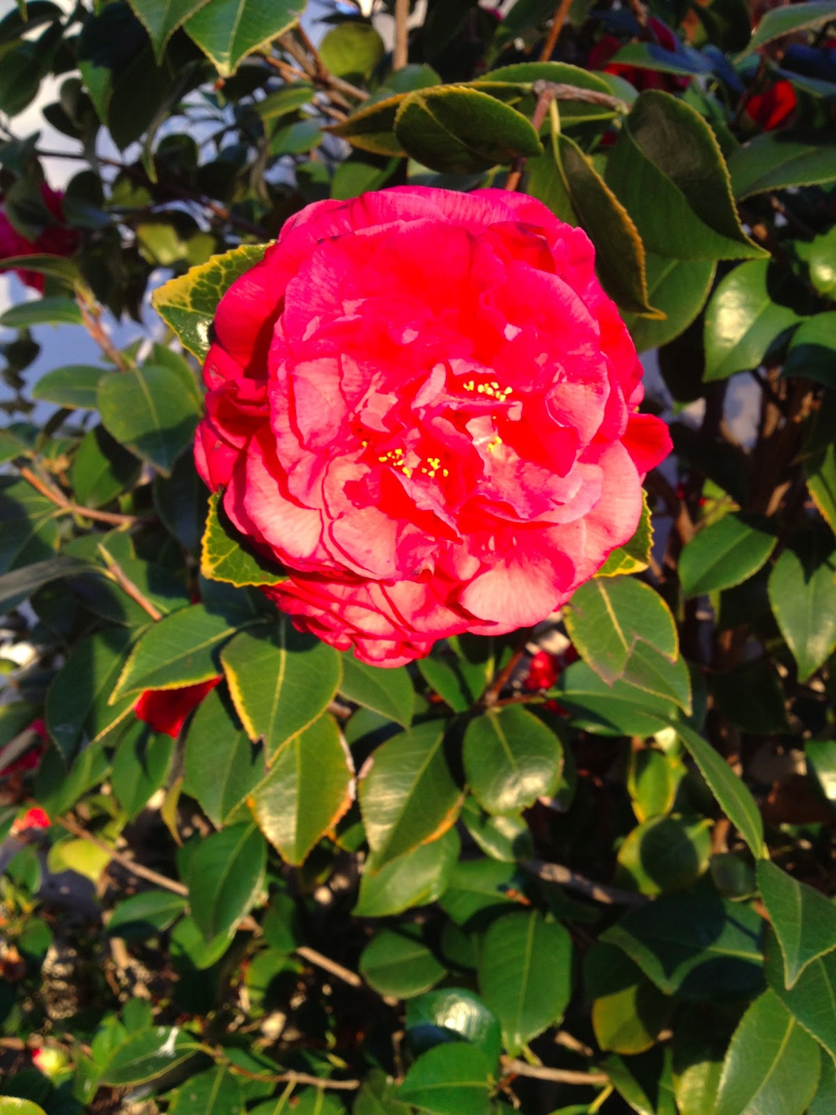 | This camelia was the size of my head. There was a hedge of them in full bloom outside the hotel. |