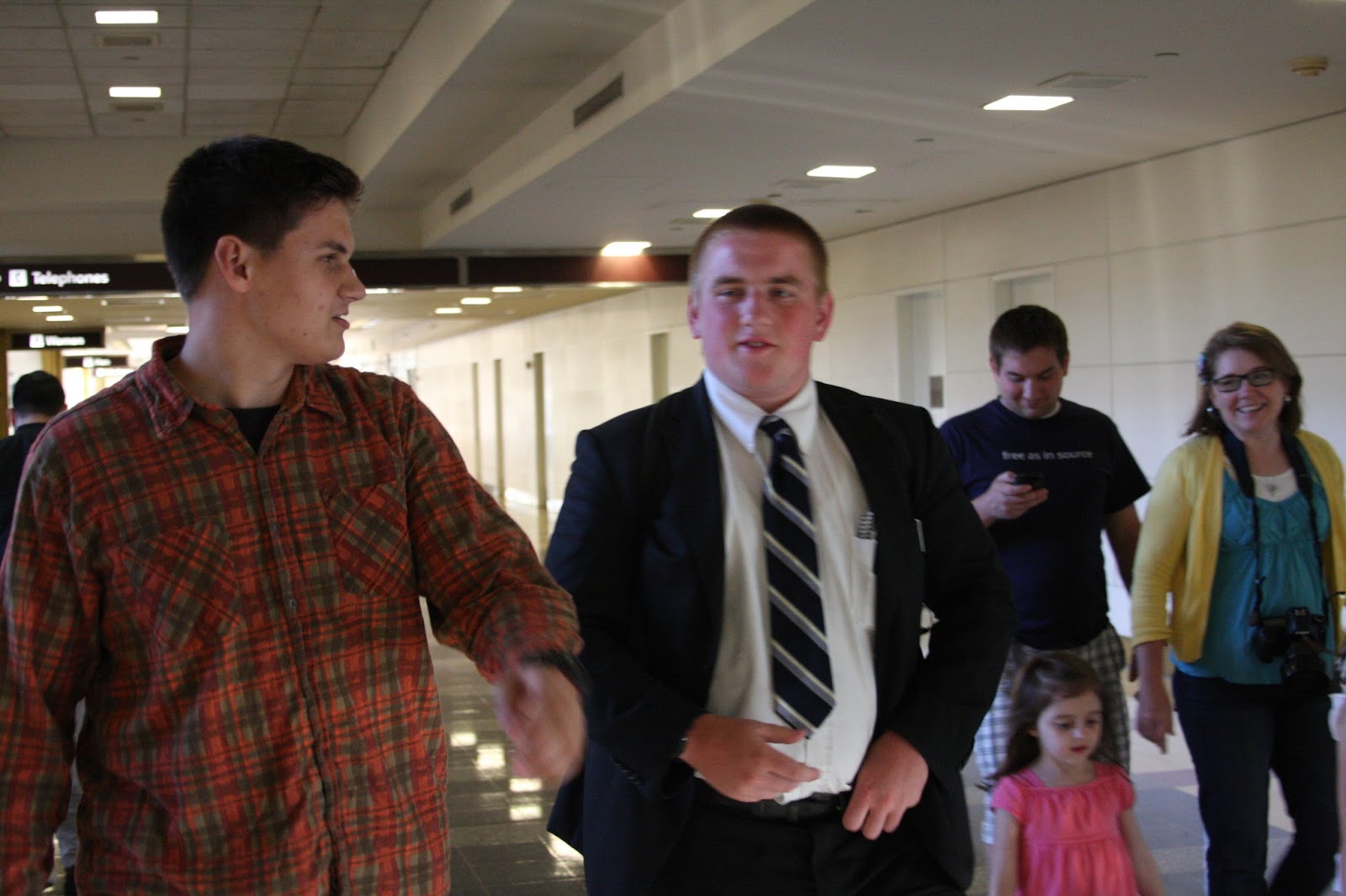 Eventually, we got parked and did not just run, we sprinted through the airport with everything we had and reached the security gate maybe 90 seconds before we first caught sight of Sam coming around the corner with anther missionary. Talk about the nick of time! I was so relieved. Of course it was a joyful moment with our dear friend Laurrel and her kids there as well. I still well up with happy tears as I think of it.
