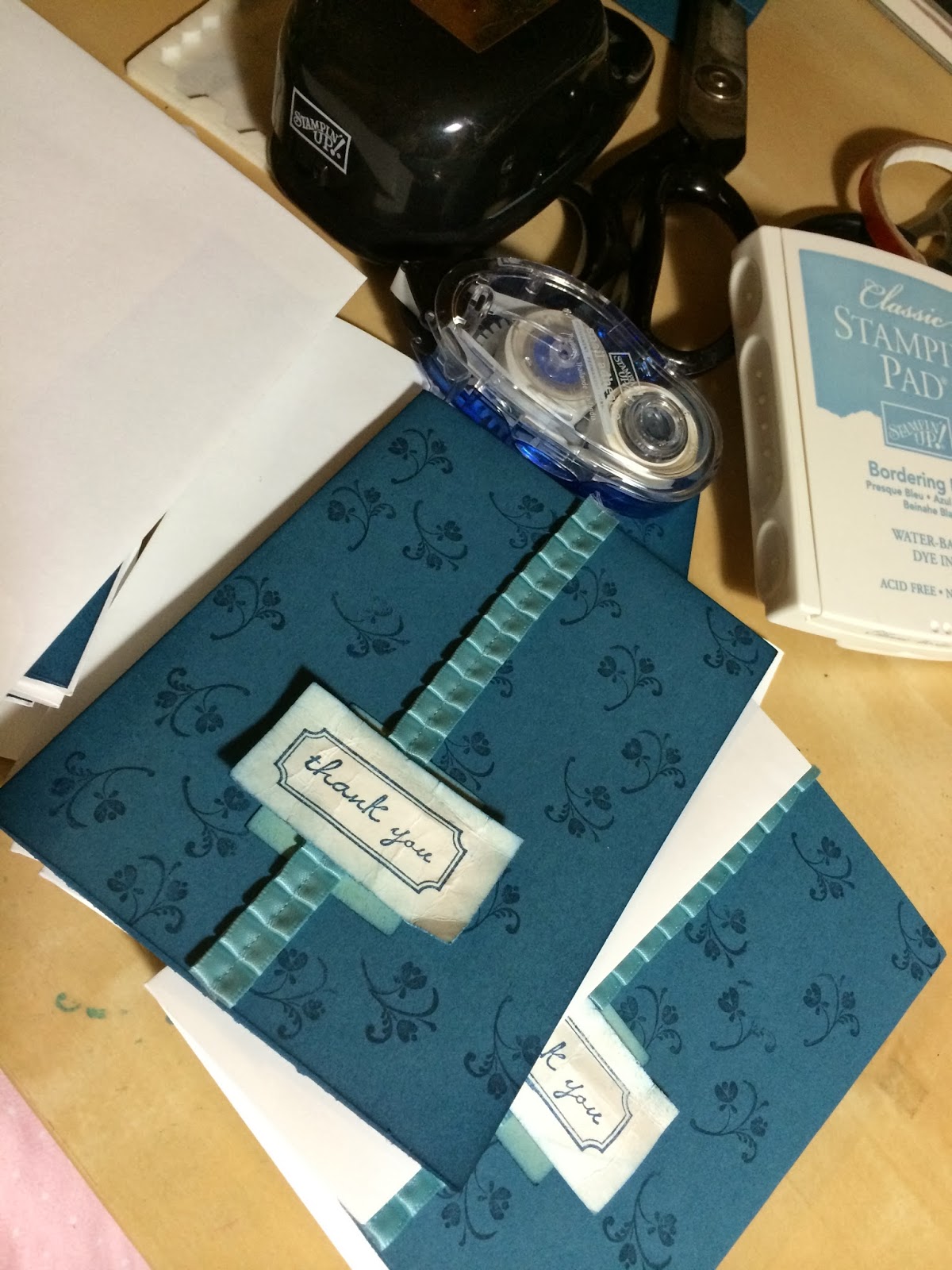 I never was perfect, but tonight I remembered that I used to be pretty good at this and had some fun. I figured out a design I could mass-produce to send to Sara. It’s good for missionaries to have cards and notes on hand, and I still have gobs of supplies, so now I have a cute little set of 10 thank-you notes to send to New Mexico for her to use to share the Love of God with others around her.