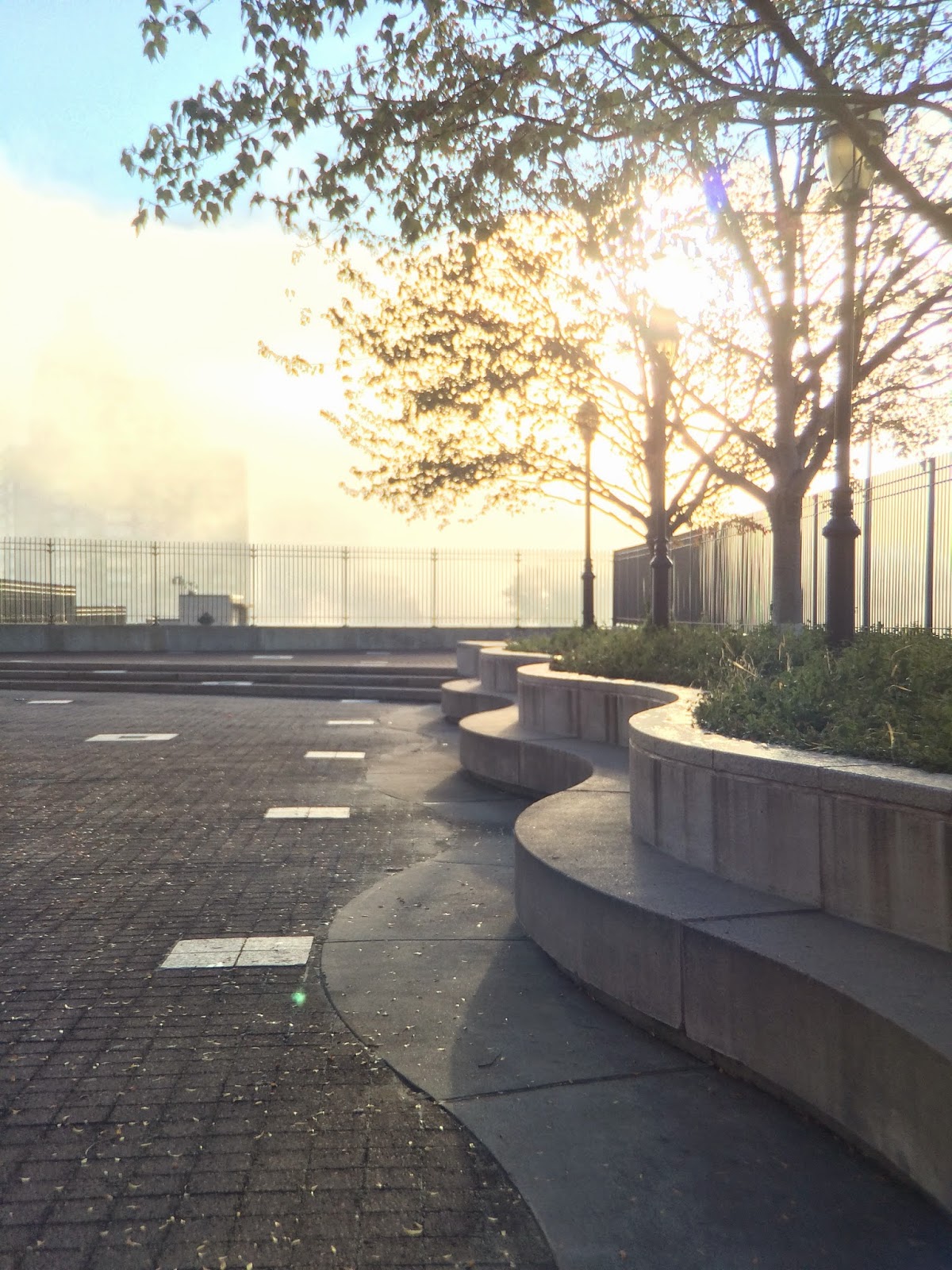 | I am trying to find line and beauty and pattern all around, not just in the obvious places. This is just a downtown plaza, but I liked it. |
