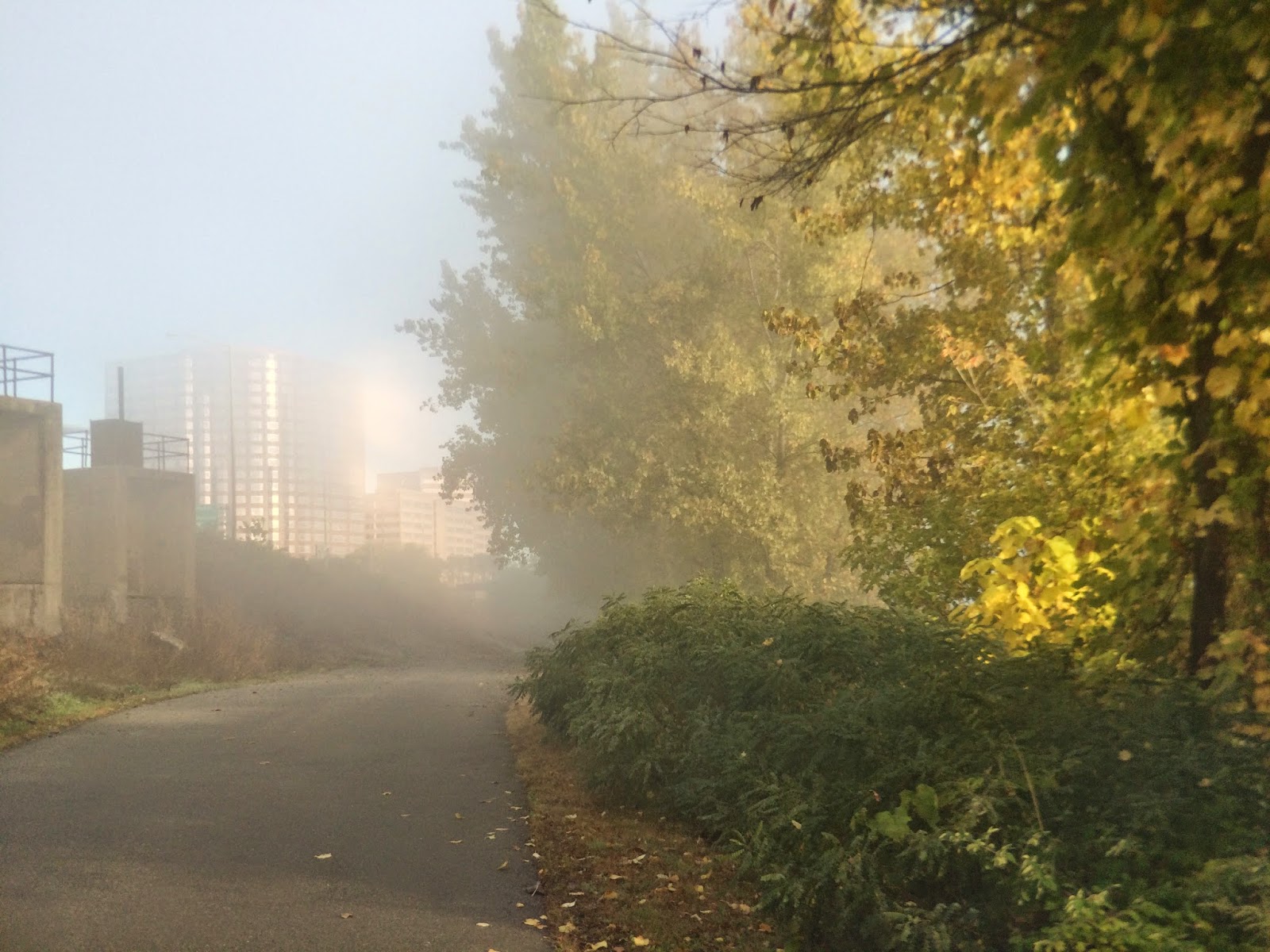 | My good friend and I always take a walk on the Sunday morning of Stitches and this time it was deep fog. So beautiful. |
