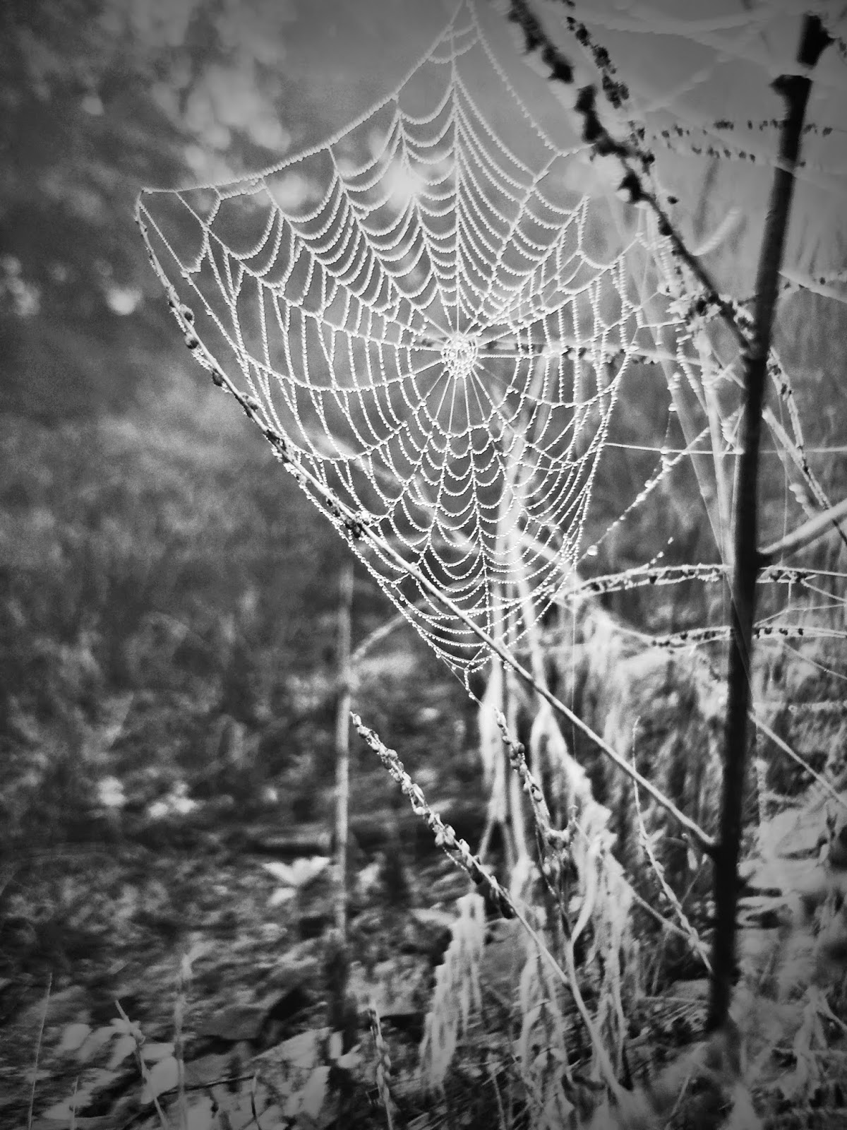 | We found bushes covered in perfect 6-inch webs that are likely nearly invisible without the dewdrops. Repeat, Could. Not. Stop. Photographing. |