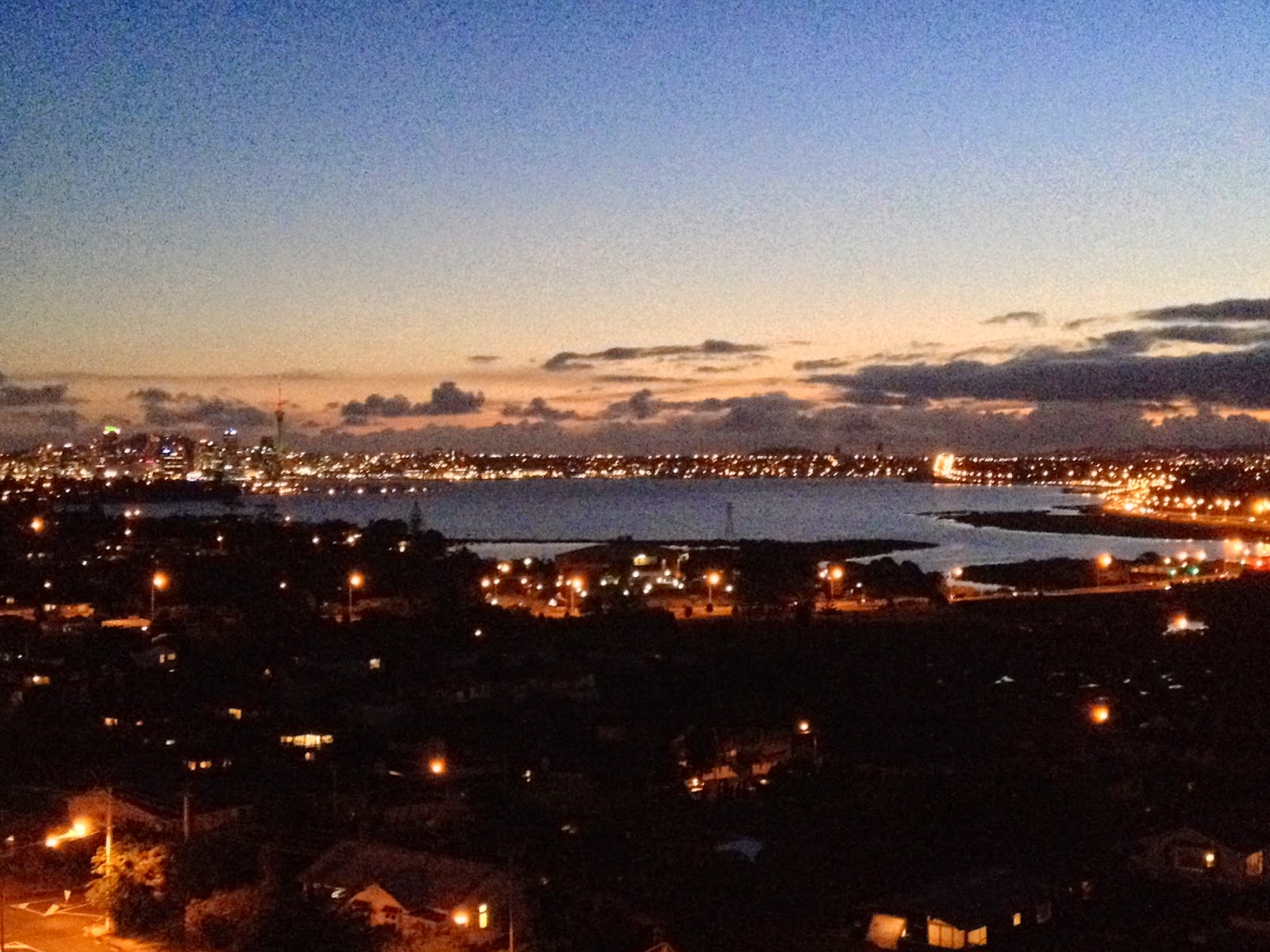 | The view of Auckland downtown across the harbor from my hotel. |