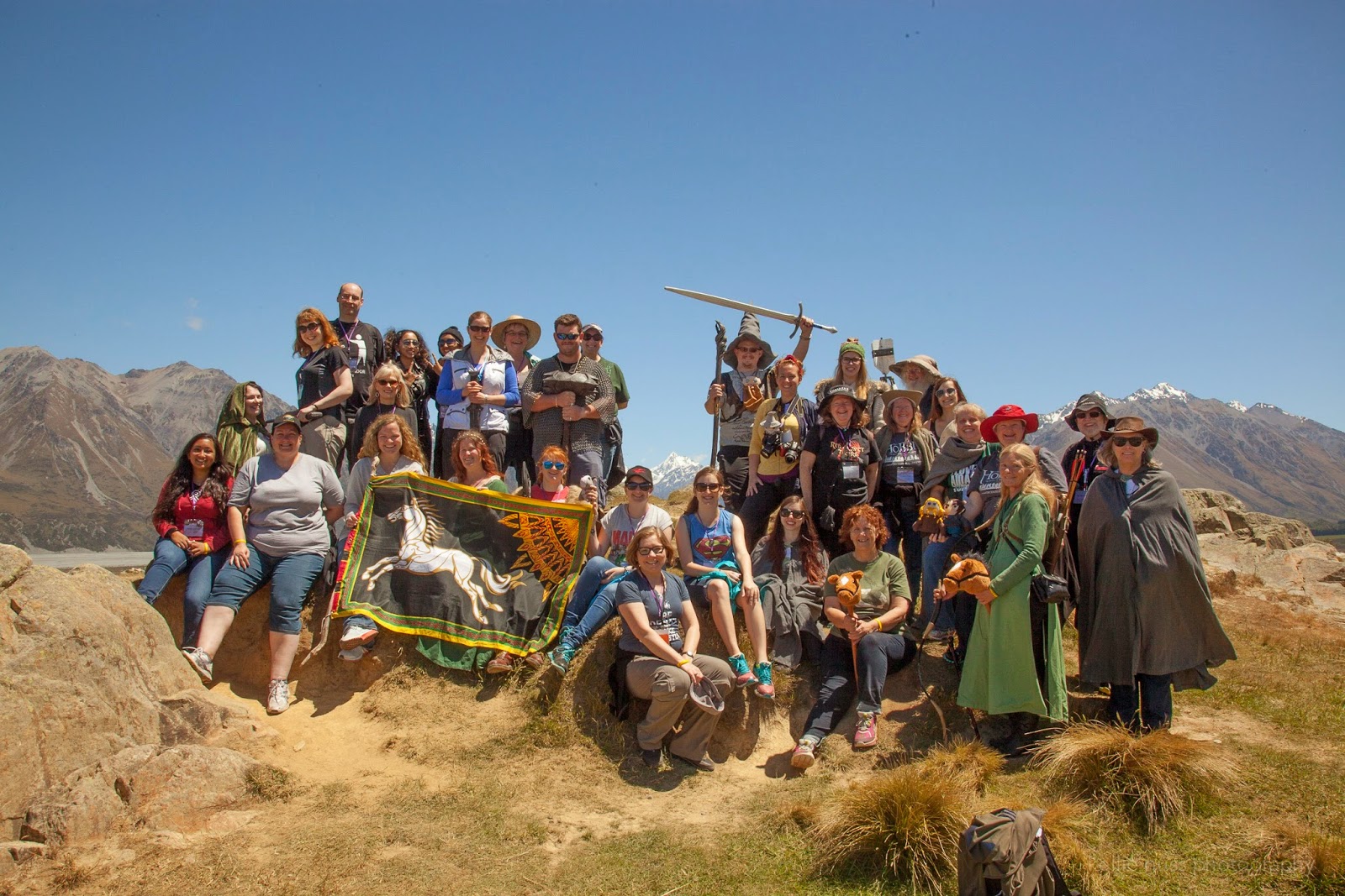 After a good dinner, some browsing of handmade cloaks and other costume garb, and a good night’s sleep, we awoke on Sunday for one of the most anticipated days of the tour for many of the fellowship: Mt. Sunday, the location of the Golden Hall of King Theoden. It was quite a drive off the beaten path to this place, and it was stunning. Carved glacial valleys lead the eye to dramatic vistas in every direction. A few peaks are still showing off their snowy caps just for us. As we drove in, mist and clouds threatened to obscure the views, but by the time we got there and climbed the bluff, the clouds were gone and it was clear for miles and miles.