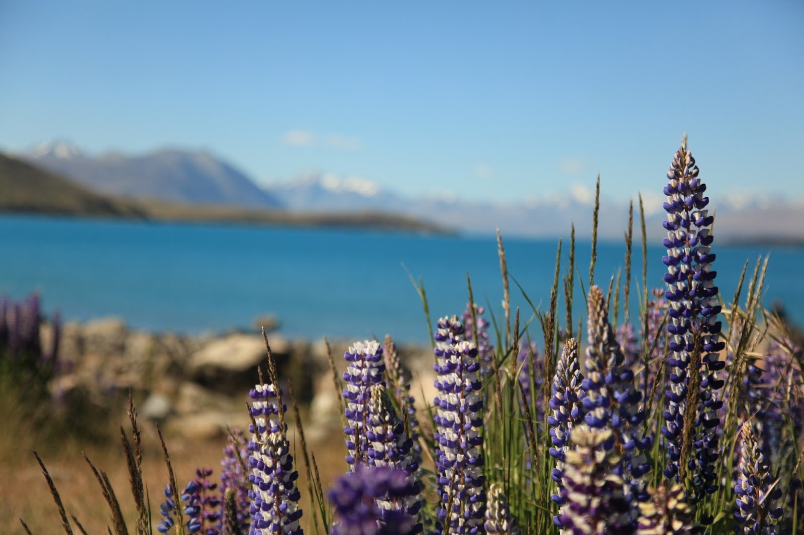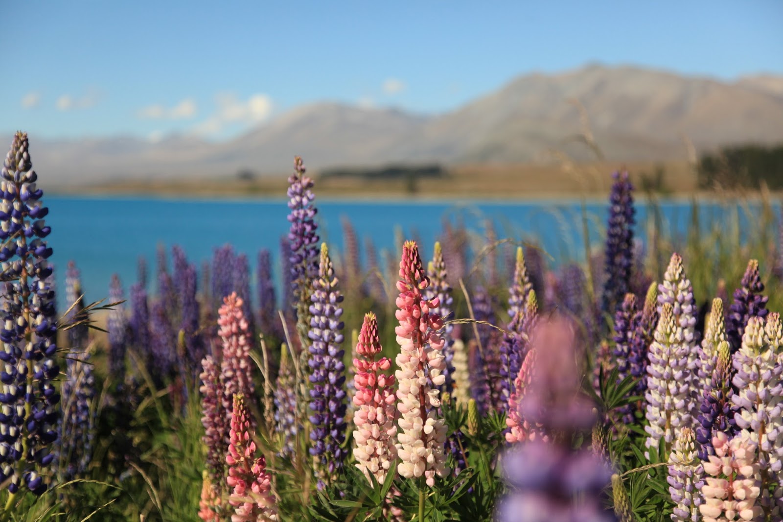 After we left Edoras, or Mt. Sunday, we made our way to the tranquil town of Twizel, stopping by turns at Lake Takapo and Lake Pukaki for spectacular views of the Southern Alps and Mt. Cook. We enjoyed gorgeous weather and had a perfect view of the mountains, framed by swaths of colorful lupines. It was so beautiful it seemed almost unreal, like we’d stepped inside postcards.