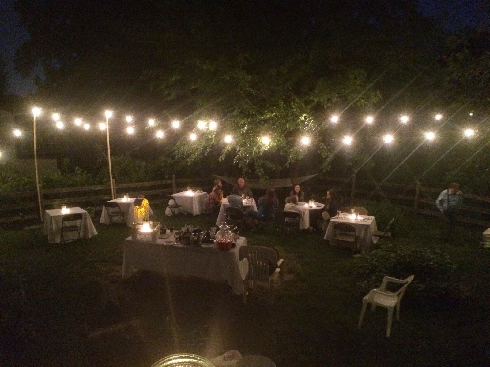 Friday night, we started our celebrations of our third child’s marriage. We hosted a small, family party at our home. We borrowed tables and chairs, put up some fun bistro lights, and set out the candles and flowers. Friends and family made food, everybody helped prepare the yard and it was really fun. It was important to me that we have time together as a family to mark the fact that in some ways, we are now all part of the same family.