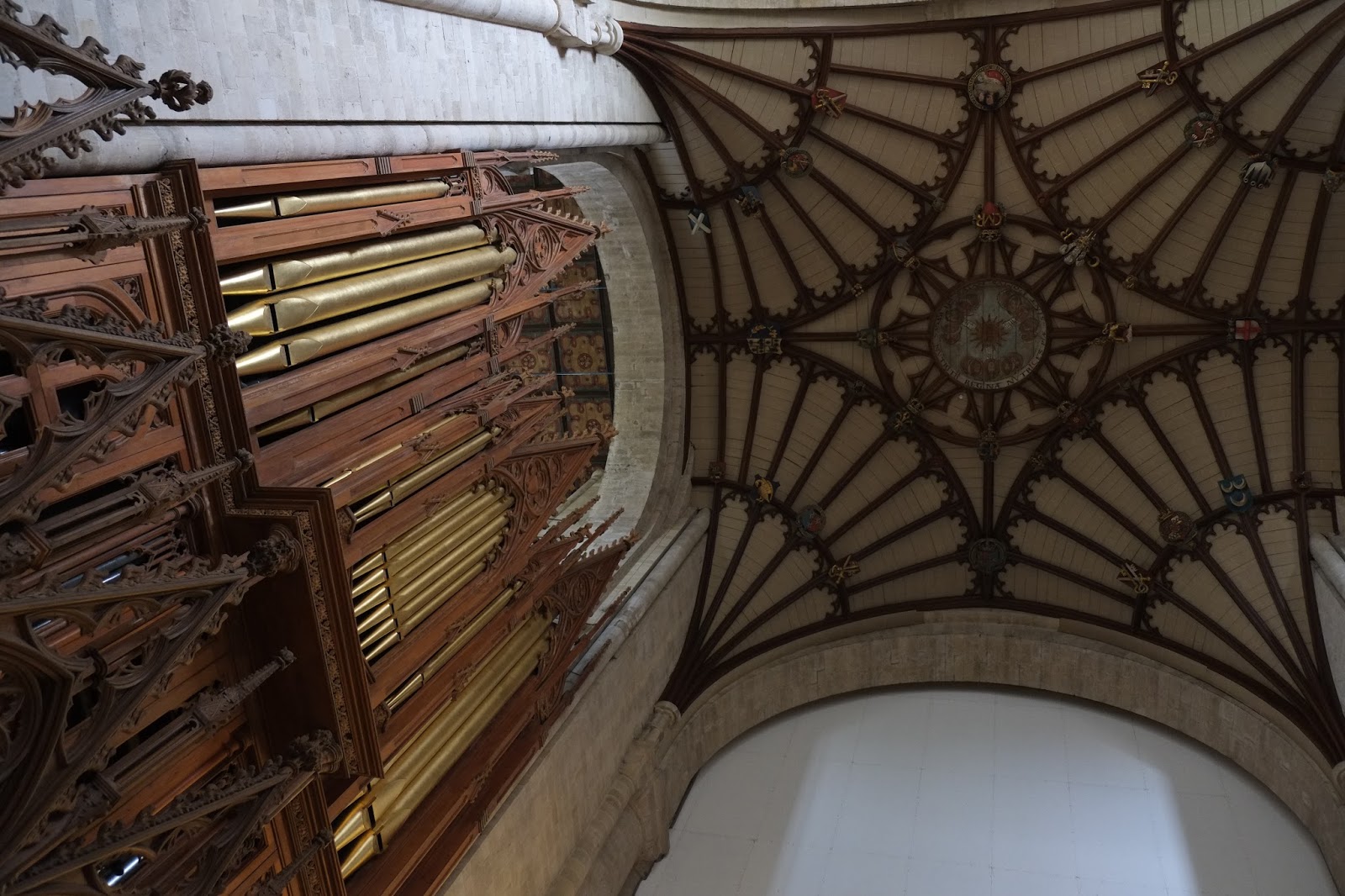 Thursday dawned bright and fair, and we headed to Winchester to see the Cathedral. I hope I will never, ever cease to be awed by my first steps inside a cathedral. I hope I will always be swept away by the symbolism and sacrifice that is inherent in these amazing buildings. I know there is plenty of other stuff mixed into cathedral history, and this one especially, what with William the Conquerer and all that, but I want to remember the beauty and think of craftsmen trying to offer their best work to God. I want to remember the details like beautiful tiles and stained glass. Also, the stories, like that of William Walker and his willingness to spend 5 years of his life diving daily into the water underneath the cathedral to shore up the foundation and allow for further repairs. He is remembered as the man who saved Winchester Cathedral. I loved the mosaic stained glass window at the end of the Nave–it was created out of the broken pieces of glass that parishioners saved after the original stained glass windows were shot out. I love that this mosaic of broken things actually allows more light into the church and gives it a unique atmosphere among cathedrals. I appreciated the tour guide pointing out how much he loves the way the gothic arches lead the eye up, rather than keeping the attention grounded, like the original Norman-style arches did. I want to remember an elderly couple meticulously polishing the candlesticks and glass chimneys in the choir while we were on our tour. Their quiet, focused work while the visitors streamed in an around them was really touching to me.