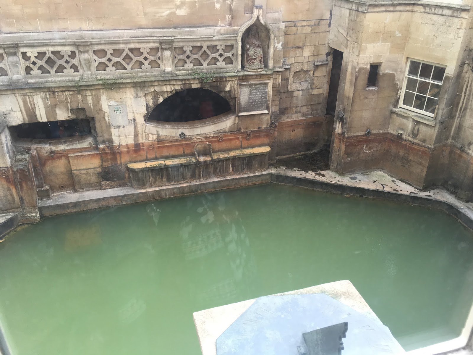 The next morning, we headed to Bath for a girls’ day out, and again, Erin’s friends welcomed me so warmly. The forecast called for rain, but soon into the day, it changed to all fluffy clouds and blue skies. We floated in those famous thermal waters in a rooftop pool, and I was amazed by the beauty around me. Bath has a distinctive look because of the local stone used in construction, and it’s in a unique valley with beautiful hills all around. We couldn’t take cameras into the spa, so I have no photos of the views from the rooftop pool, but you can get the idea here on the spa’s website. After our spa morning, we had lunch in the historic Pump Room restaurant. It was very posh. Several of the ladies had a traditional High Tea, but I opted instead for a perfect morsel of Cod and a new-to-me vegetable called samphire. We got home again in time for school pickup and a normal family evening of yet another amazing dinner by Lila and a trip to church for youth activities for one of Erin’s kids.