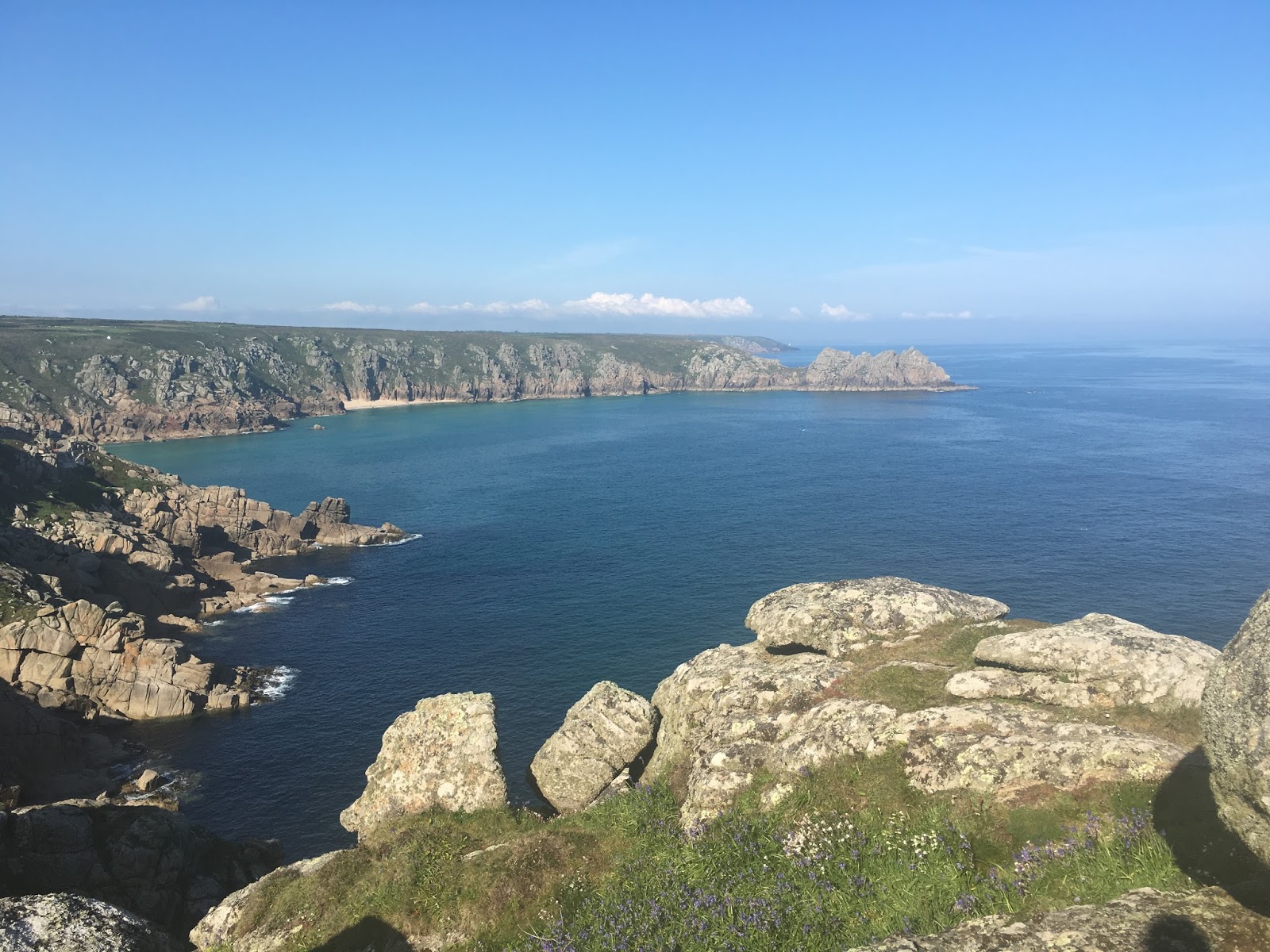 The next day, we got up early and headed to a little town called St. Just. We followed a trail out to the Coastal Path and spent the next 5 miles taking in more amazing views, fields of flowers, stone steps, and that amazingly clear turquoise water. We could’t get over how, if you forgot you were in England, it actually looked like the Bahamas. We did put our feet in, and it definitely wasn’t the Bahamas. Still gorgeous though. We walked all the way to Land’s End, which was a silly dream of mine, to stand at that farthest point on the map. We got to the end, the British flag was flying in the wild wind, and I was happy.