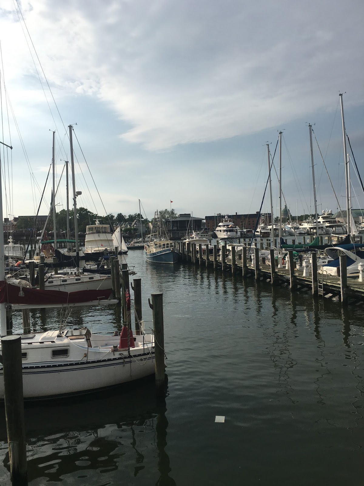 Ah. Annapolis. Dinner at a table by the water watching the sun go down through masts and sails. |