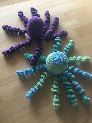 | My mom and I crocheted together. She’s very talented and picked up how to make these octopi right away. |