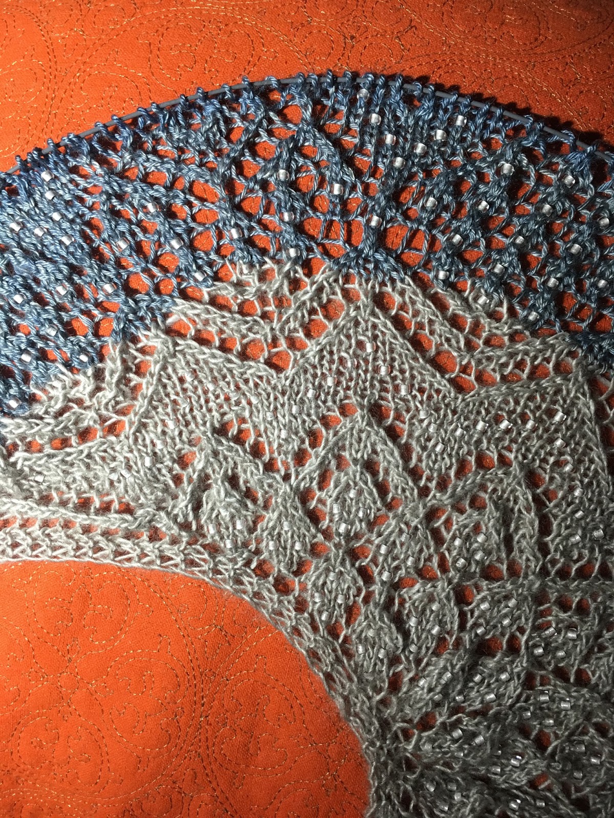 | As soon as I finished the blanket, I started on Sara’s wedding shawl. It’s going to be so pretty! |
