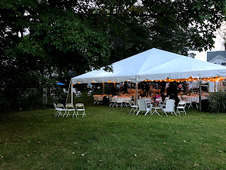 | Here’s the fun party tent. There was a felafel truck providing dinner, a candy bar for treats, and s’mores for dessert. It was beautiful, simple and really festive. |