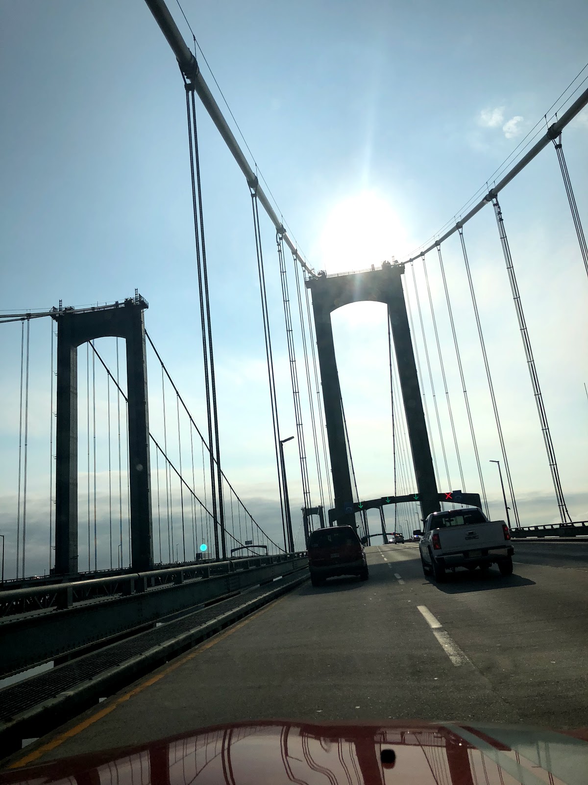 | The Delaware Memorial Bridge is the first big landmark out of Maryland, so it feels like the real beginning of the adventures. |