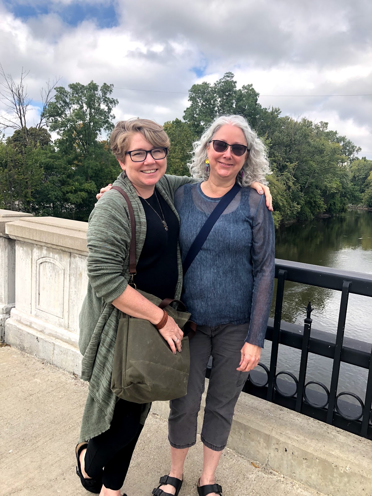 I loved seeing her home for reals after seeing the rectangle of whatever is behind her when she’s skyping. It’s a warm and welcoming home filled with books, art and yarn. We had a lovely relaxed dinner, then the next day I got to see Woven Art, the classy and well-stocked yarn shop where she works. I may have purchased some souvenirs yarn. We had lunch in the arts district of Lansing, Michigan, did a little shopping, and will forever have the memory of that time when I bought two small items at a tony gift shop and got the full Mr. Bean treatment from “Love, Actually.” Sarah needed to get to work, so it really was that awkward moment when I was ready to just stop the shop girl from wrapping my items, placing them in “so much more than a bag,” tying on a piece of greenery and spraying the bag with fragrance and just run away. But we stayed and my bag was indeed memorable, so much so that I couldn’t bear to just toss it and pack my stuff in the car. I actually moved things around so I could keep it for just a little while longer.
