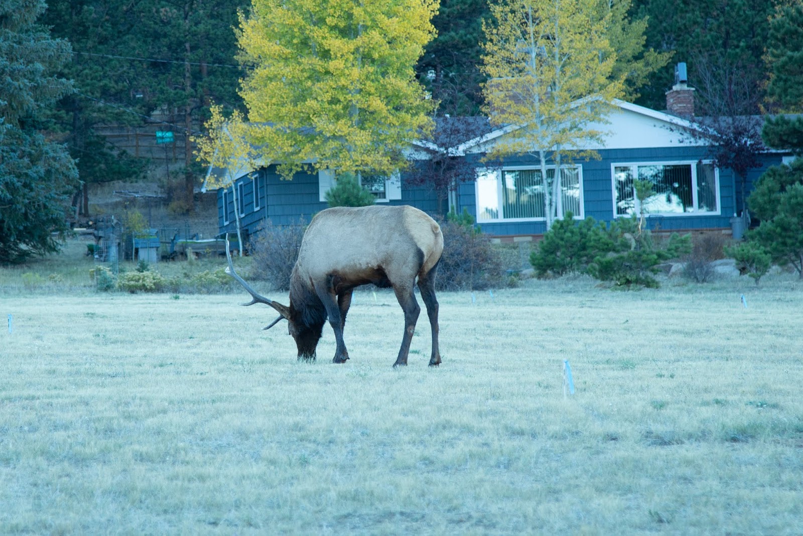 As for critters, Estes Park was crowded because it was the Elk Fest. Not only do the humans come to see the Elk, but the Elk come to town as well, but probably not to see the humans. There were groups of them hanging out in the golf courses and on lawns and in parking lots. There were harems walking through the trees, being bugled along by the males. I’ve never seen so many Elk. It was the Rut, which means it’s time for the males to fight and for all of them to mate. You can read more about it here.