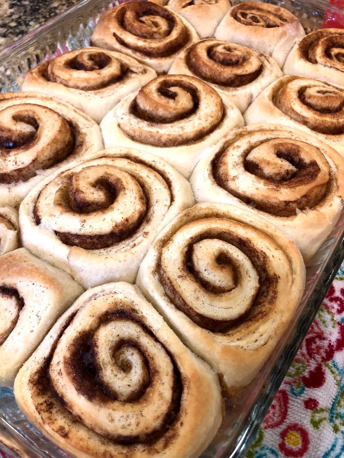 | And this is before the frosting. I do love a good cinnamon roll. I may not be a master baker, but I can come up with a reliable pan of cinnamon rolls. |