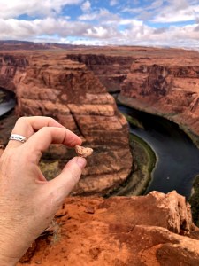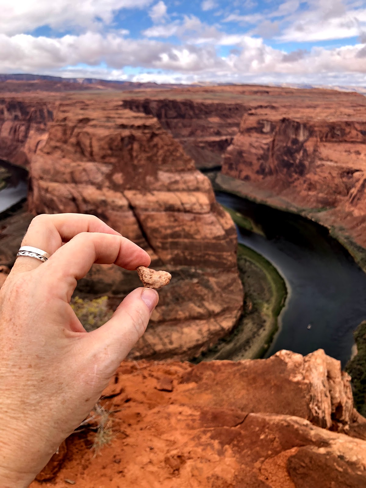 I stopped at the visitor’s center for the Glen Canyon Dam Recreational Area to stamp my NPS Passport, then headed down the road a couple miles to Horseshoe Bend, the iconic 270 degree curve in the Colorado River that is glorious prelude to the Grand Canyon. The red rocks, 1000 foot cliffs and the river reflecting the sky create an image so strikingly beautiful. I always think about what it must have been like for ancient people to come upon such a scene for the first time.