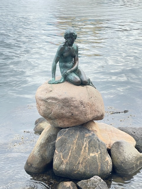 We were originally going to spend a few days in Copenhagen, then take the train to Eric’s friend in Goteburg, Sweden, then go to Oslo. But, plans and availabilities changed and so we ended up with two afternoons in Copenhagen on each end of the trip since it wasn’t practical to pay the fees to change the flights. We flew out of BWI, which is so convenient and I’m so grateful. We stopped very briefly in Reykjavík to change planes and arrived in Copenhagen around midday. We took the metro to our hotel which was easy and inexpensive, then spent a really pleasant afternoon walking from our hotel over to the Little Mermaid statue and stopping to see whatever we wanted along the way. We went down streets that appealed to us , saw the mermaid, and had dinner in a nice restaurant by the water, then took the metro back to the hotel.